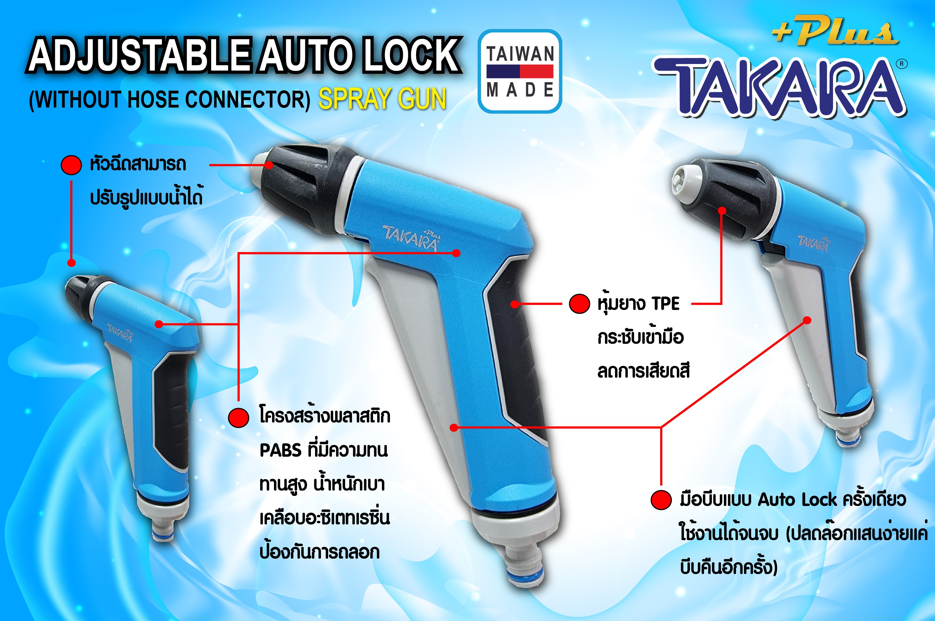 ปืนฉีดน้ำ ปรับรูปแบบน้ำได้ (Auto Lock) TAKARA Plus