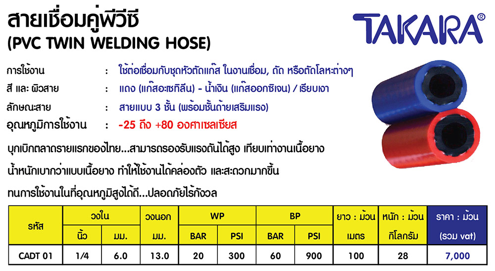 ATT004-10 สายเชื่อมคู่ยาง 1/4"X10M น้ำเงิน-แดง (TIS) TAKARA